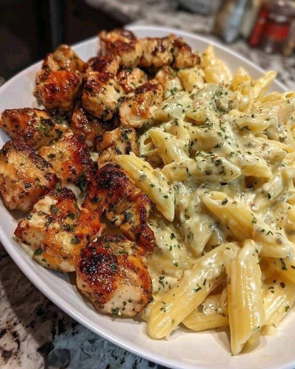 Creamy Garlic Butter Chicken & Linguine in Alfredo Sauce