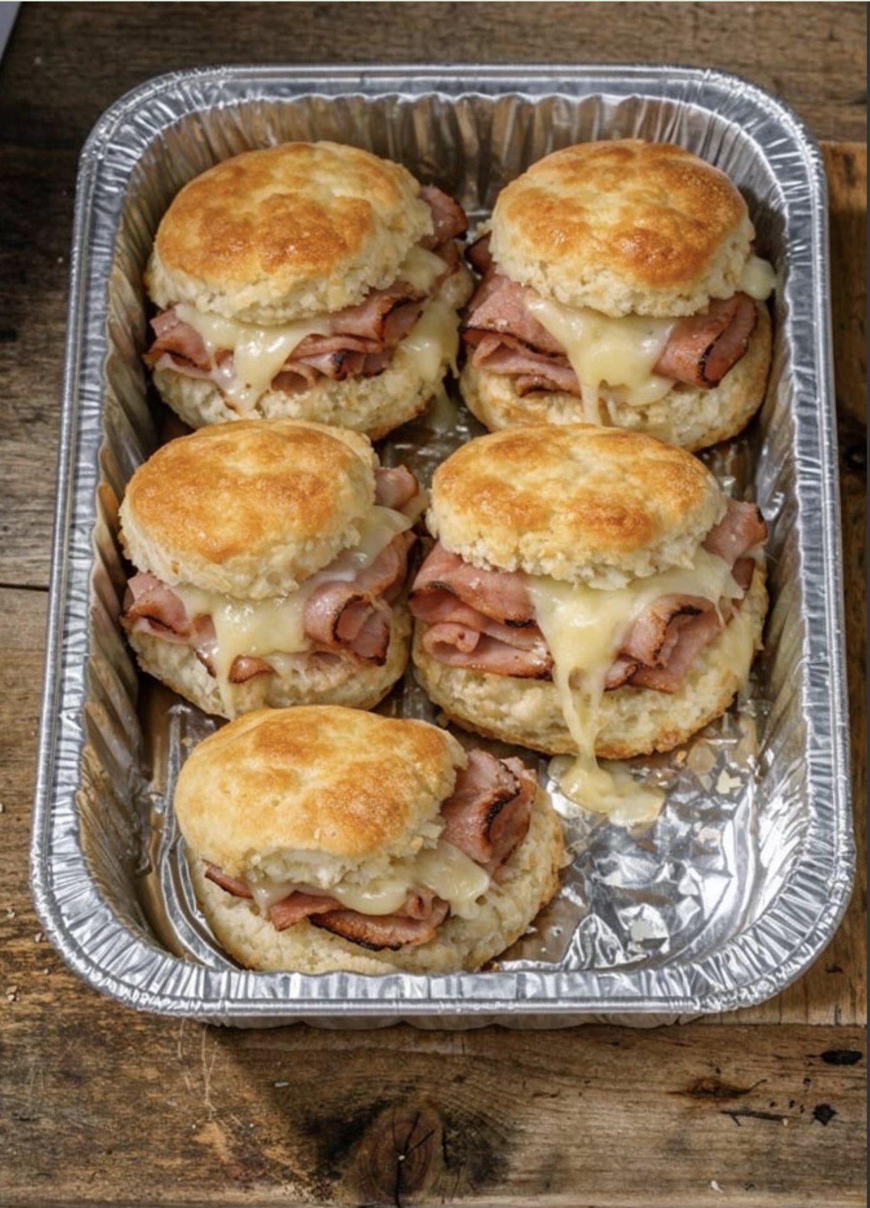 Swiss cheese is the natural partner to ham and worth using here rather than substituting unless you specifically prefer something different. It melts evenly, has enough fat content to become properly gooey without becoming greasy, and its mildly nutty, slightly sweet flavor complements the ham without overpowering the biscuit. Provolone is the closest substitute and works nearly as well. Mozzarella gives a milder, stretchier result. Sharp cheddar creates a noticeably bolder flavor profile that some people actually prefer.