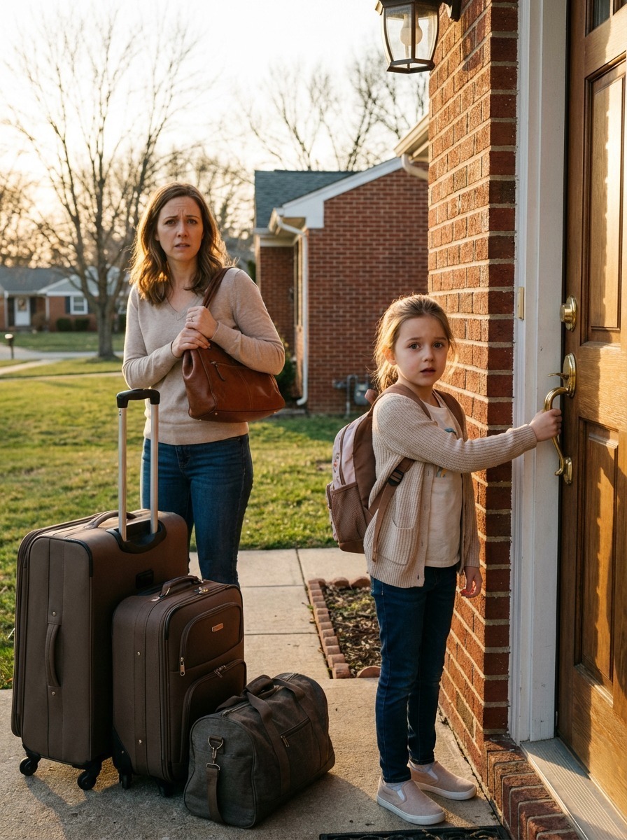 Then a sharp metallic click echoed through the entryway, startling both of us into stunned silence, because the deadbolt above the handle slid firmly into place without human touch, a mechanical decision executed remotely with chilling finality.
