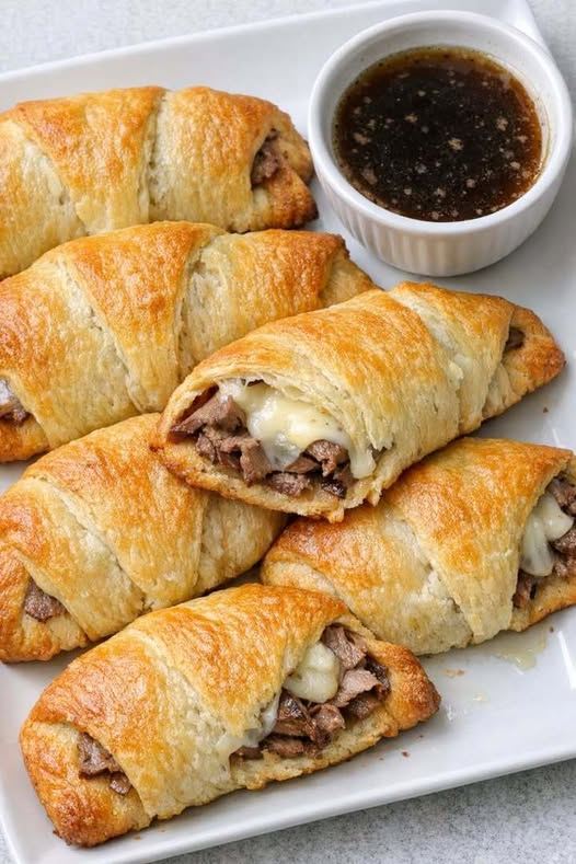 These Oven-Baked 4-Ingredient French Dip Crescent Pockets are a simple, handheld twist on the classic sandwich, bringing rich, savory flavor together in a quick and easy way. Tender slices of roast beef and melty Swiss cheese are wrapped in buttery crescent roll dough, creating a warm, flaky pocket. Served with a side of au jus for dipping, they turn basic ingredients into a satisfying appetizer or fast dinner.