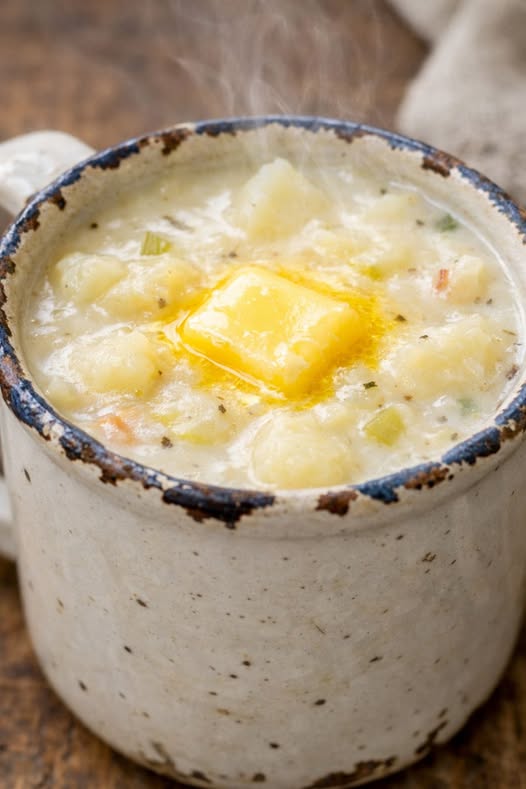 This soup is a classic “pantry staple” meal that transforms the humble potato into a rich and comforting masterpiece. Unlike modern recipes that rely on heavy creams or complex thickeners, this old-fashioned version uses the natural starches of the potatoes themselves to create a velvety consistency. It’s a nostalgic dish that prioritizes the earthy flavor of the potato, enhanced only by the richness of butter and the savory depth of milk and onions. It is the definition of “comfort in a bowl.”