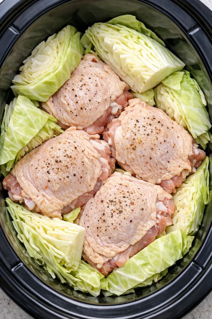 The magic of this dish lies in the three-ingredient seasoning blend that transforms basic pantry staples into a rich, savory glaze. While the slow cooker does the heavy lifting, the natural sweetness of the cabbage pairs perfectly with the saltiness of the chicken skin, ensuring every bite is perfectly balanced.