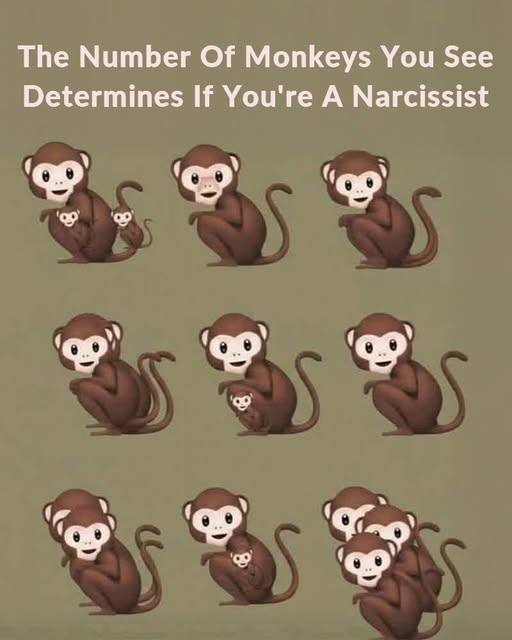 There is no scientific evidence that counting a certain number of monkeys can tell you whether someone is a narcissist. That part is pure viral bait — a dramatic, attention-grabbing line designed to spark curiosity, stir reactions, and keep people sharing the post.
