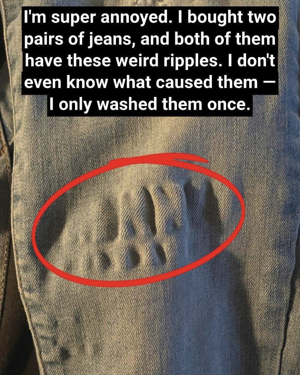 You toss your favorite pair of jeans in the wash, predicting them to come out clean and fresh. But when you pull them from the dryer, you notice strange ripples or wavy lines running down the fabric — especially near the seams or thighs. What happened? Are they ruined?
